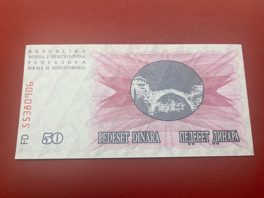 Bosnia and Herzegovina 50 Dinara 1992Regular price £2.00 GBPRegular priceUnit price per-