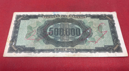 Bank of Greece. Axis occupation 500.000 Drachmai Banknote Serial -Z926775