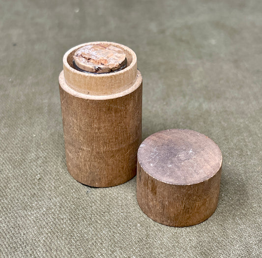 Vintage Wooden Medicine Container with Glass Vial & Cork – Excellent Condition