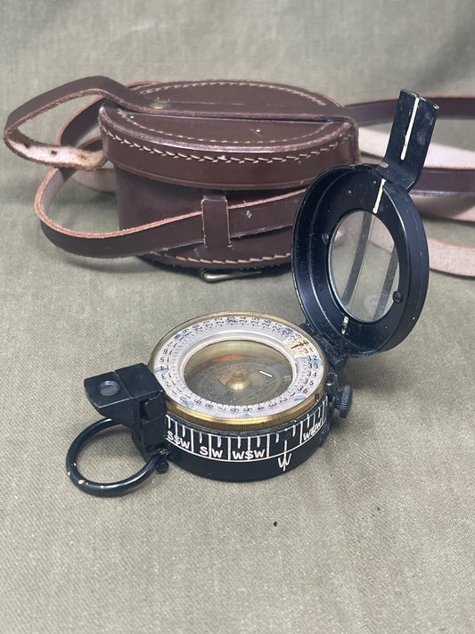 WWII British Prismatic Compass & Leather Case