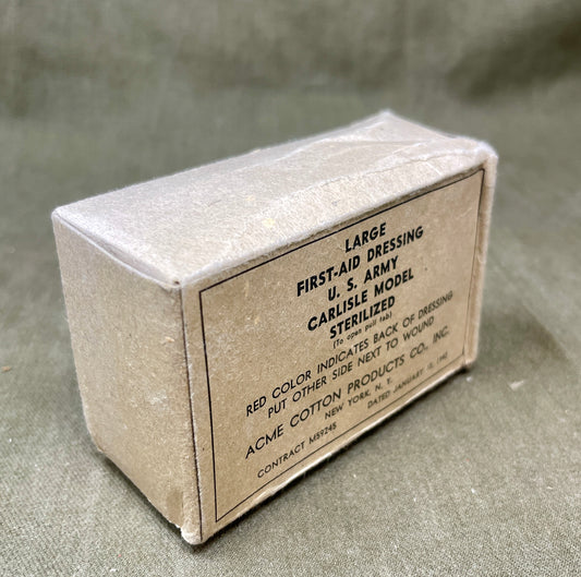 Large First Aid Dressing U.S. Army Carlisle Model Acme Cotton Products Co. Inc. 1942 Dated
