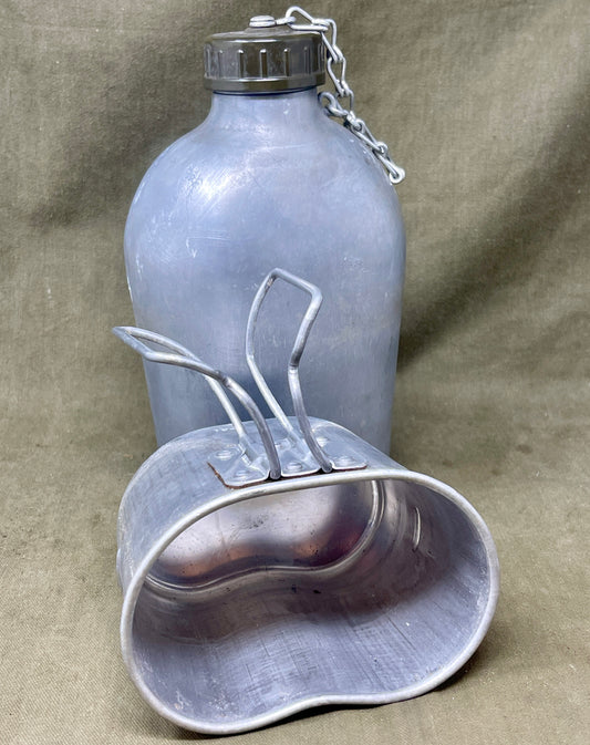 Genuine French Army Surplus Field Flask/Canteen Plus Cup and Cover Aluminium