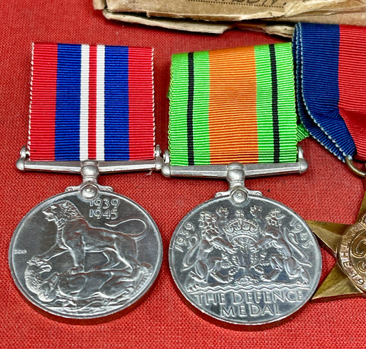 A WWII Royal Navy Medal Group Defence Medal, War Medal, Italy, Africa and 1939-45 Star, Atlantic Star
