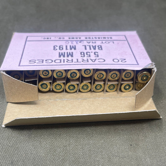 20 x 5.56mm Cartridges Ball M193 Remington Arms Corp