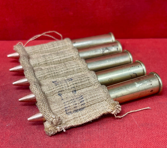 5 X BLANK 1941 Dated – .303 Lee Enfield Rounds In Charger Loading Clip