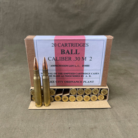 WWII .30-06 Ball Cartridge .30 M2 Ammo Box Reproduction