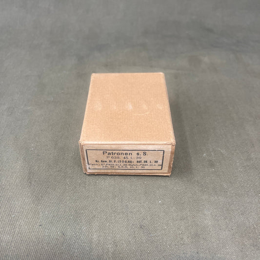 Original WW2 15 x Mauser 7.92x57mm Patronen P635. 45. L. 39 Ammunition Box.