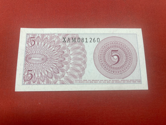 Bank of Indonesia 5 Lima Sen 1964 Serial XAM081260