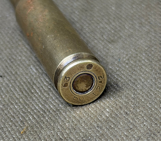 Original 1952 20mm Brass Cartridge Case – RG (Radway Green) – Collectible Ammunition