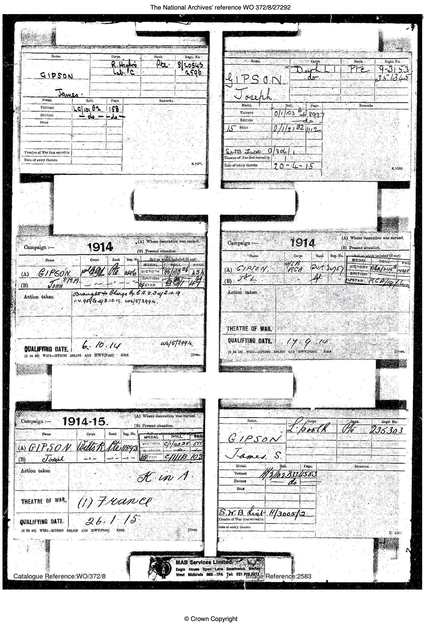 235303 Pte J Gipsom Liverpool. British War Medal Victory Medal