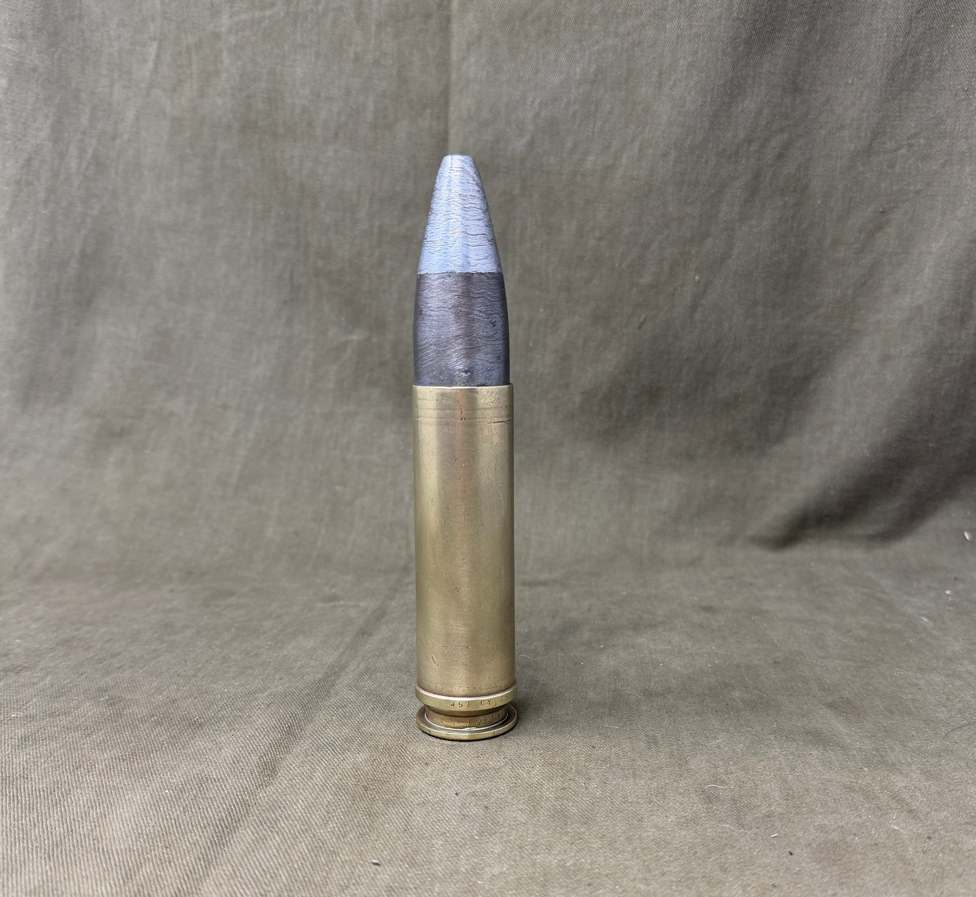 The 30mm 19 CY 86 PRAC 4Z Projectile & Brass Cartridge Case is a training round designed for military applications. It consists of a 30mm projectile made from inert materials, ensuring safe handling and use during training exercises. The projectile is encased in a durable brass cartridge, known for its resistance to corrosion and ease of reloading. The projectile features a distinctive marking code "19 CY 86 PRAC 4Z" indicating its specifications and manufacturing details. Designed to simulate live ammunition, this round provides realistic practice scenarios for operators without the risk of explosive detonation, enhancing combat readiness.