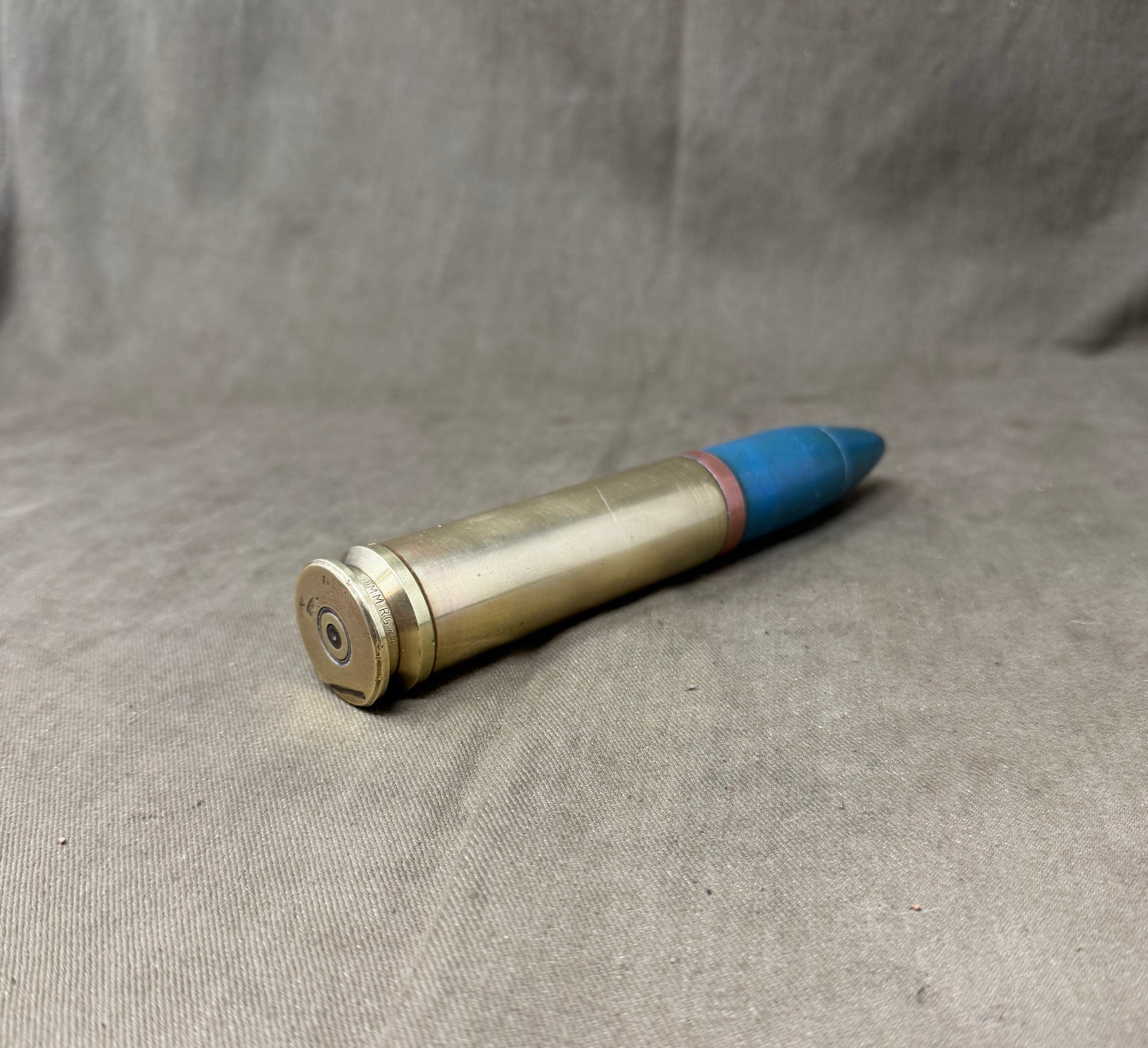 The 30mm CY PRAC 4Z Projectile & Brass Cartridge Case is a training round designed for military applications. It consists of a 30mm projectile made from inert materials, ensuring safe handling and use during training exercises. The projectile is encased in a durable brass cartridge, known for its resistance to corrosion and ease of reloading. The projectile features a distinctive marking code " CY PRAC 4Z" indicating its specifications and manufacturing details. Designed to simulate live ammunition, this round provides realistic practice scenarios for operators without the risk of explosive detonation, enhancing combat readiness.