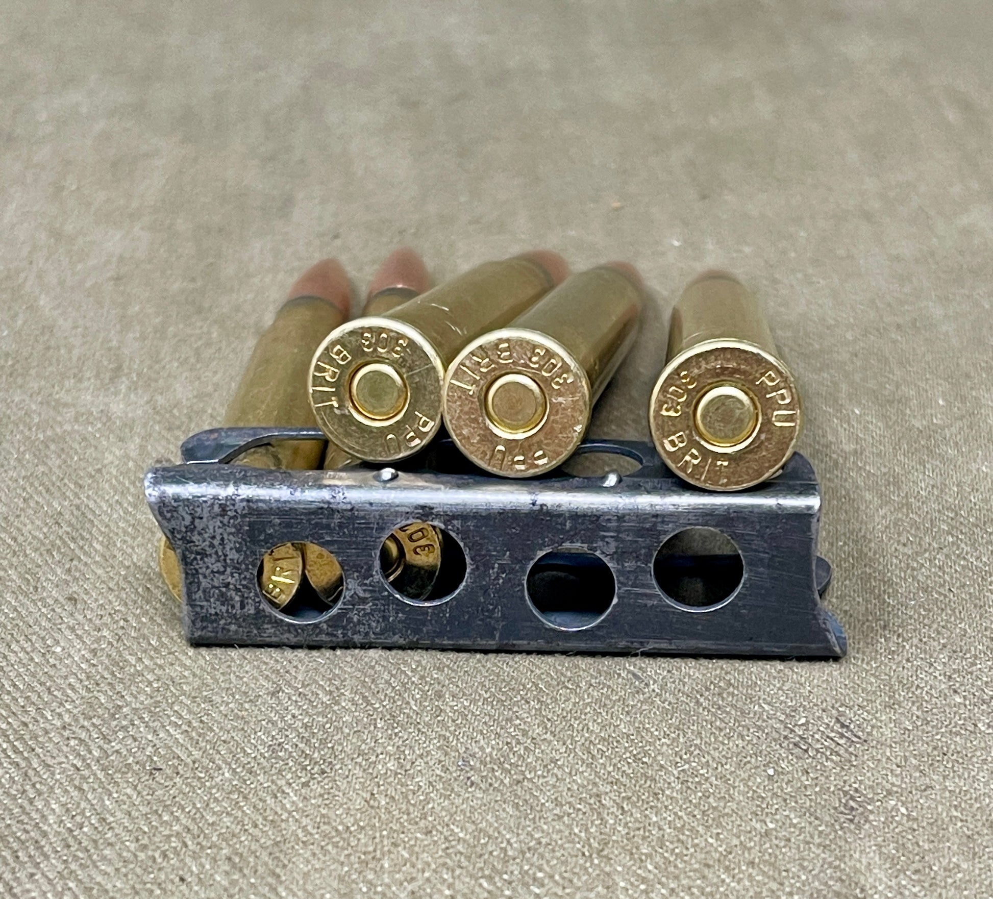 5 X Inert/ Display – .303 Lee Enfield Rounds In Charger Loading Clip ( INERT Primers )