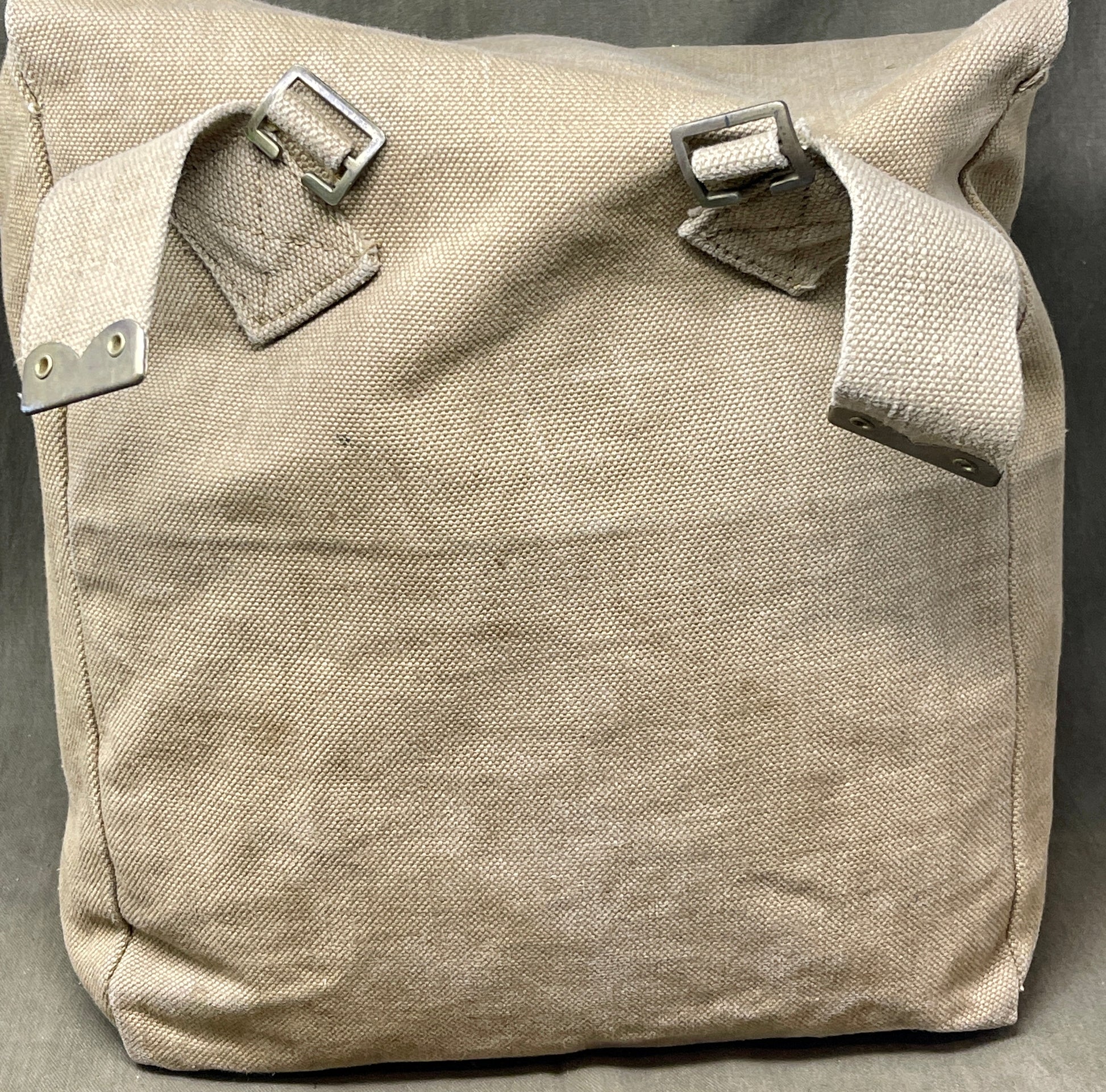 This British Army 1937 Pattern Webbing Large Pack, clearly marked M.E.C.O. 1940, is an authentic piece of Second World War military equipment. Designed to be a core component of the 1937 Pattern webbing set, the large pack was issued to infantry and support troops to carry bulky items such as greatcoats, rations, entrenching tools, and personal kit. Its robust cotton web construction in the correct wartime khaki shade and period-correct fittings reflect the practical design principles of British Army gear used from the early years of the conflict across multiple theatres.
