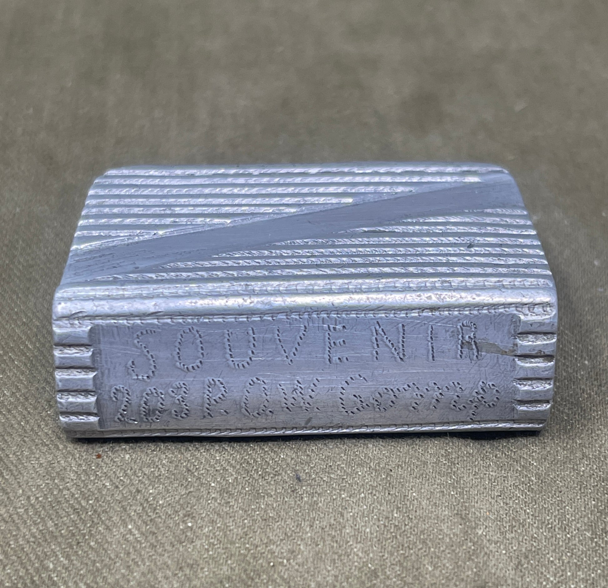 WW2 Aluminium Prisoner Of War Trench Art Matchbox Cover 203 POW Camp