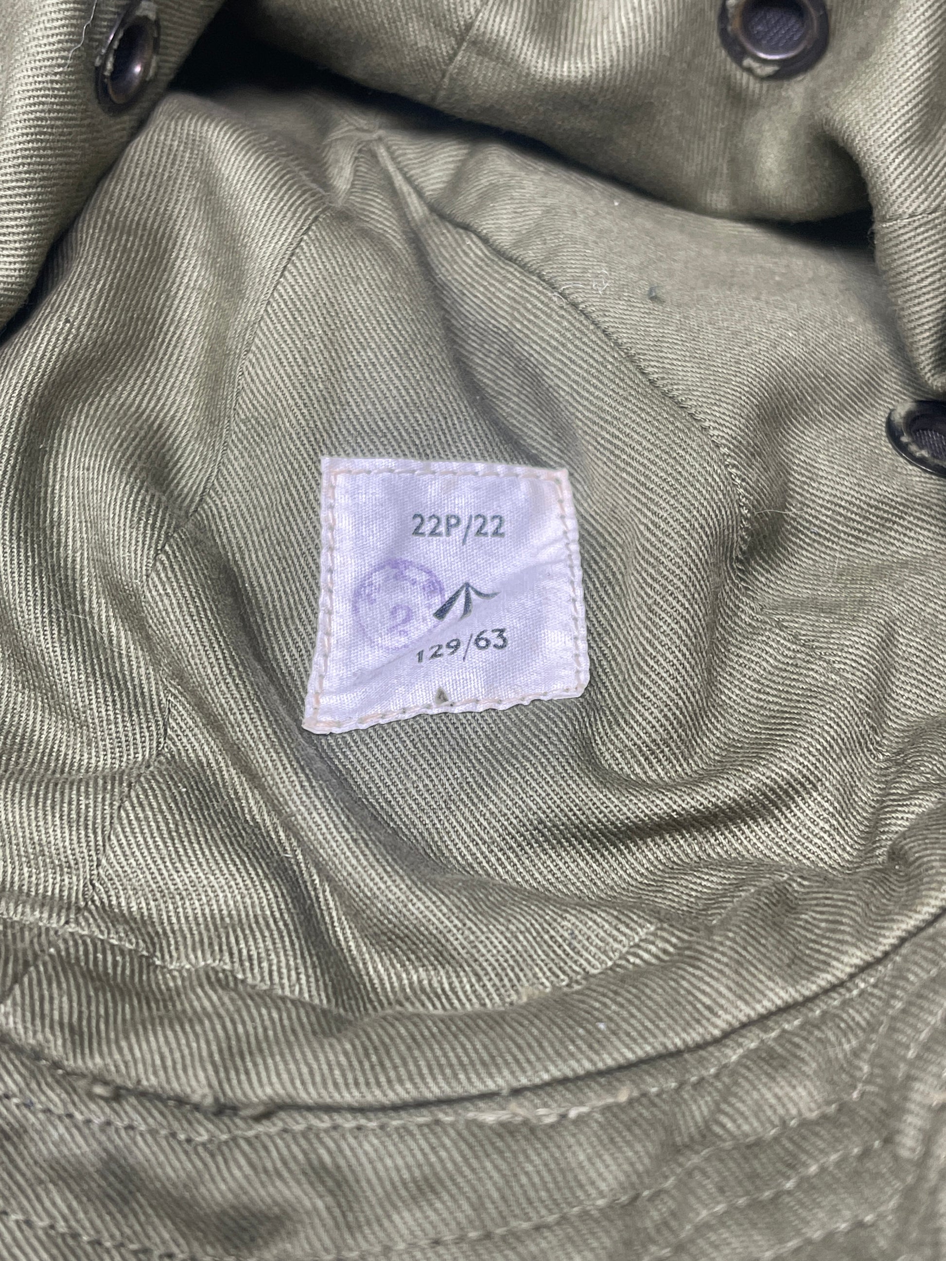 This green British Jungle Hat dated 1963 is an excellent example of early Cold War–era military headwear, designed for use in hot and humid environments. Made from lightweight, breathable cotton, the hat was intended to provide comfort and protection during jungle operations, particularly in tropical theatres where ventilation and practicality were essential.