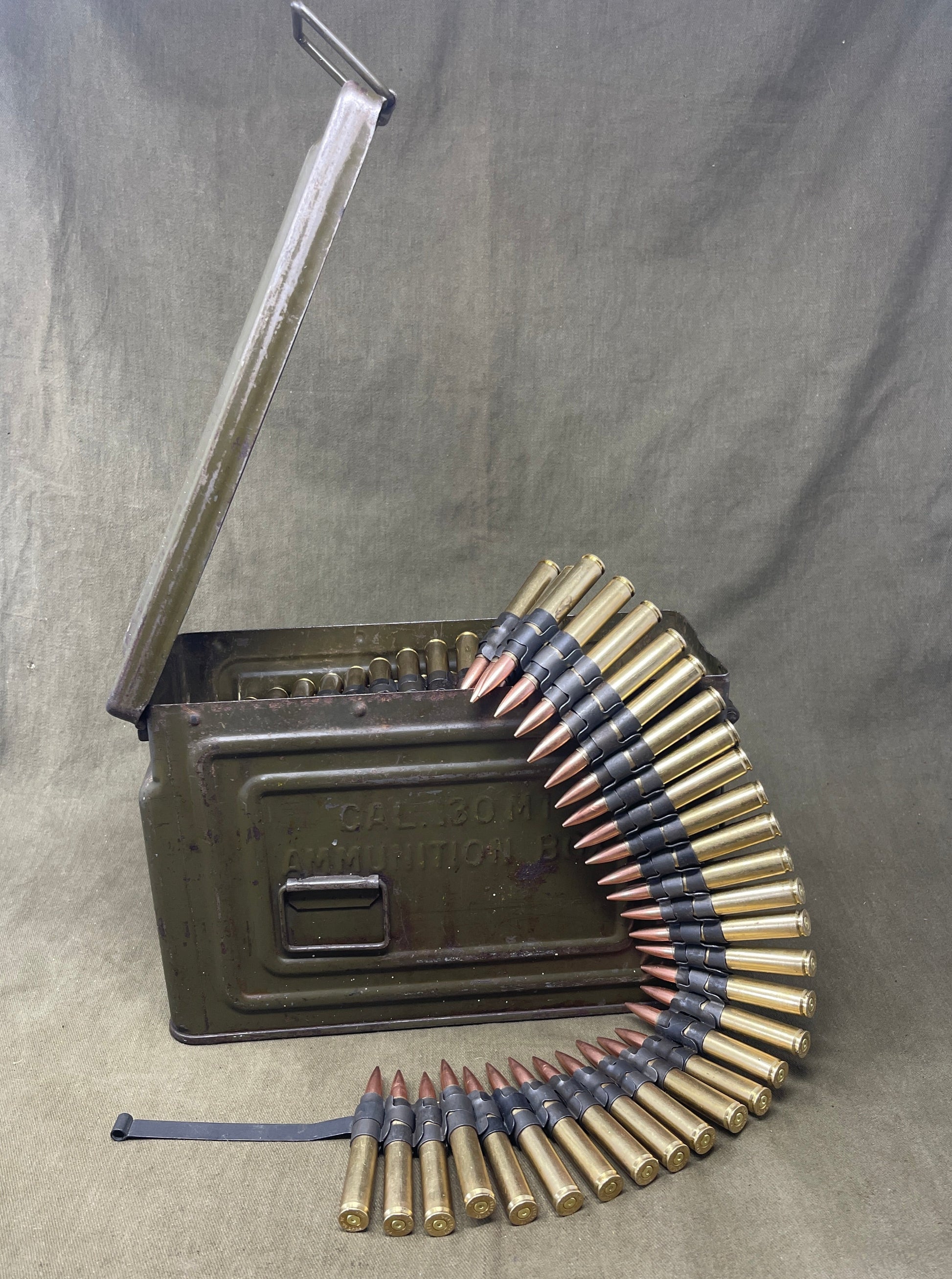 Inert .30-06 Springfield Rounds in Browning M1919A4 Machine Gun Belts – Various Sizes