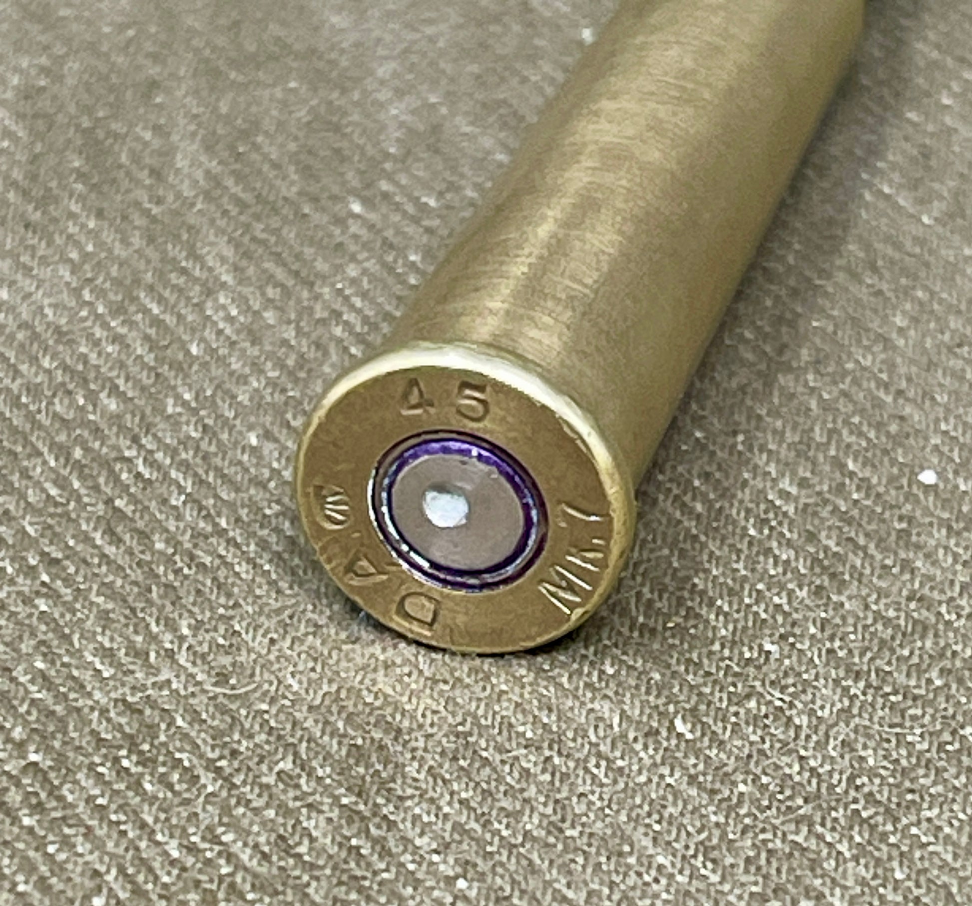 This is an original INERT .303 British cartridge, manufactured in 1945 by DAC (Dominion Arsenal, Canada), one of the major Commonwealth ammunition producers before and during the Second World War. The round has been professionally deactivated and contains no live primer or propellant, making it completely safe for display, educational use, or inclusion in a historic ammunition collection. The brass case retains its clear “DAC 45” headstamp along with natural patina and age-related marking, adding to its authenticity and visual appeal. As the .303 cartridge was the primary service round for iconic rifles such as the SMLE and Bren Gun, this early pre-war dated example offers excellent historical value. Supplied exactly as shown and securely packaged for shipping.