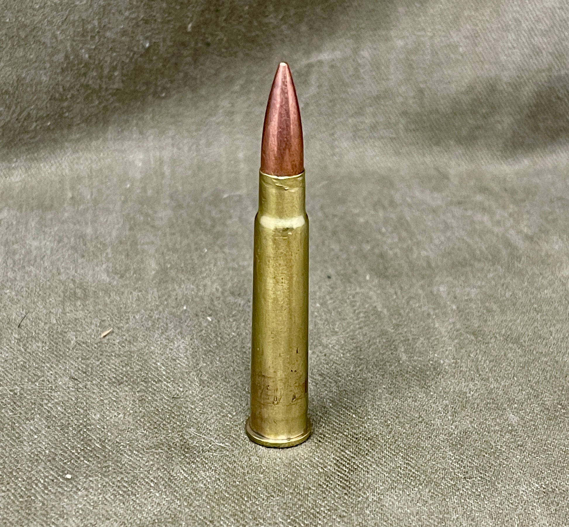 This is an inert .303 British cartridge, manufactured in 1945 at RG – Radway Green, one of Britain’s key Royal Ordnance factories. Fully deactivated and UK‑legal, this round is completely safe for display, handling, or reference purposes. The RG 45 headstamp clearly identifies its wartime British manufacture, making it an authentic example of Second World War service ammunition. Ideal for collectors of British military cartridges, historians, or anyone building a reference collection of .303 rounds, this inert cartridge offers both historical significance and visual appeal as part of a militaria display.