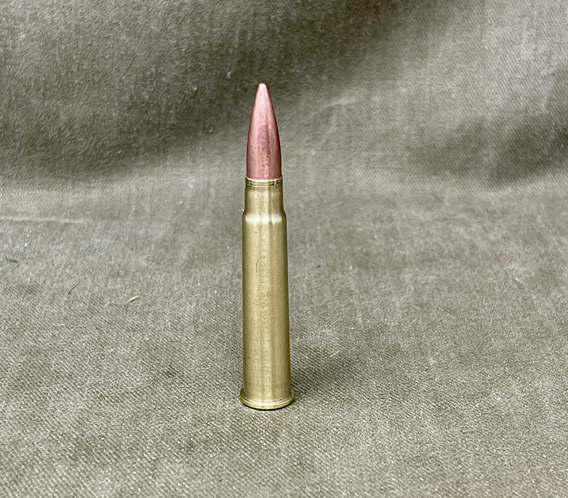 This is an inert .303 British cartridge, manufactured in 1972 at RG – Radway Green, one of Britain’s key Royal Ordnance factories. Fully deactivated and UK‑legal, this round is completely safe for display, handling, or reference purposes. The RG 72 headstamp clearly identifies its wartime British manufacture, making it an authentic example of Second World War service ammunition. Ideal for collectors of British military cartridges, historians, or anyone building a reference collection of .303 rounds, this inert cartridge offers both historical significance and visual appeal as part of a militaria display.
