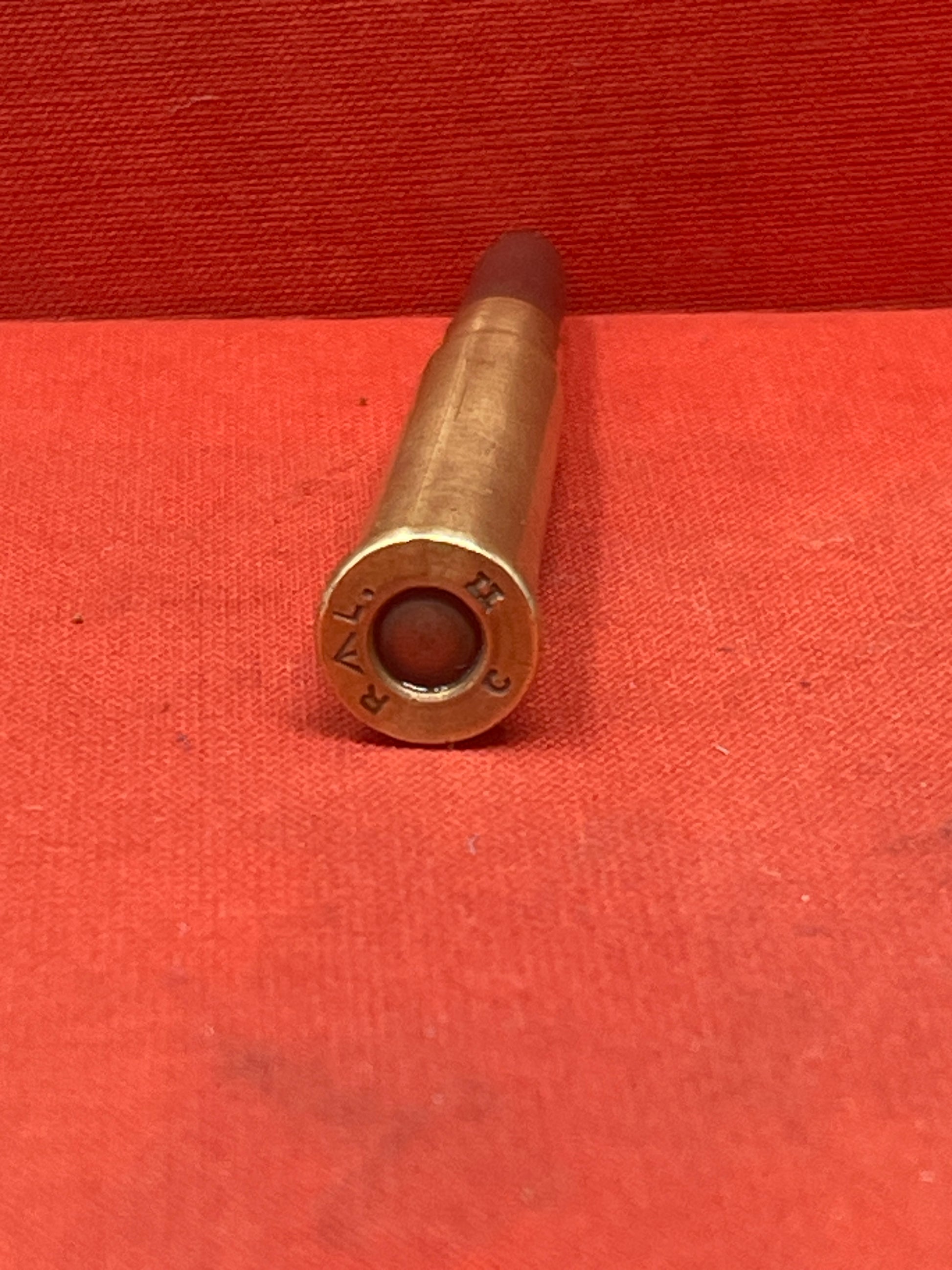 This is an inert .303 British cartridge, manufactured  by RL – Royal Laboratory, Woolwich Arsenal, UK. Fully deactivated and UK‑legal, it is completely safe for handling, display, or educational purposes. The RL C2 headstamp identifies its pre-World War II British manufacture, making it an authentic example of Royal Laboratory ordnance production. Ideal for collectors of British military ammunition, historians, or anyone building a reference display, this inert round provides insight into the United Kingdom’s preparation and ammunition standards just before the outbreak of WWII. Its clear headstamp and preserved condition make it a valuable addition to any militaria or ammunition collection.