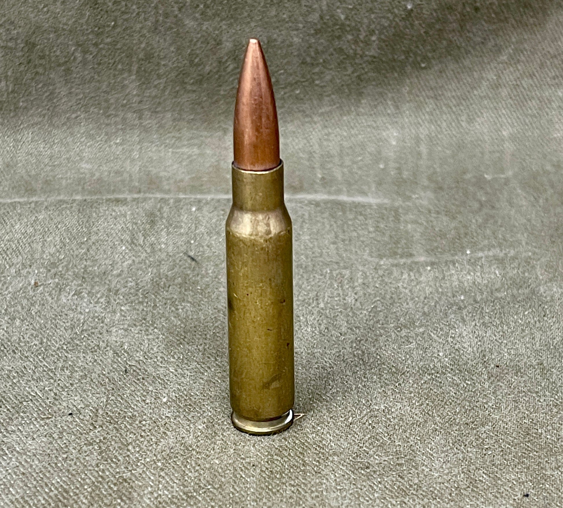 The 7.62×51 NATO cartridge was widely issued for iconic British weapons such as the L1A1 Self-Loading Rifle (SLR), GPMG (L7A1/A2), and various sniper rifles and machine guns. This inert round has been professionally deactivated, retaining its original components and external appearance while being completely safe for display, handling, and collection.