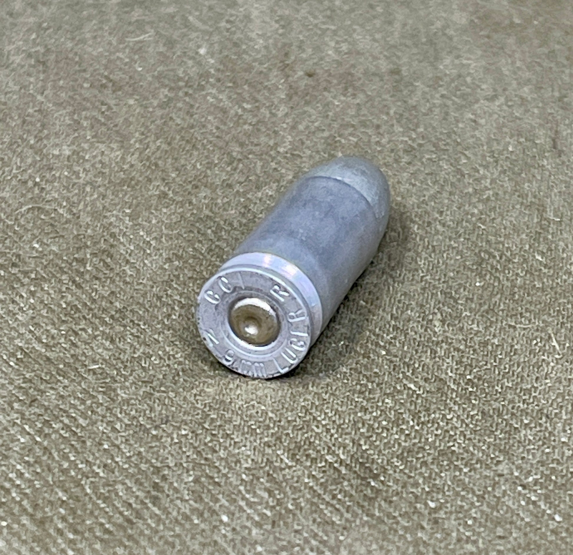 This original inert 9mm Parabellum round, marked with the CCI headstamp, was manufactured by Cascade Cartridge Inc. (CCI), USA, a well-known producer of both military and commercial ammunition. CCI is widely respected for its high-quality primers, cartridges, and small-calibre ammunition, making its products popular among collectors, shooters, and reloading enthusiasts.
