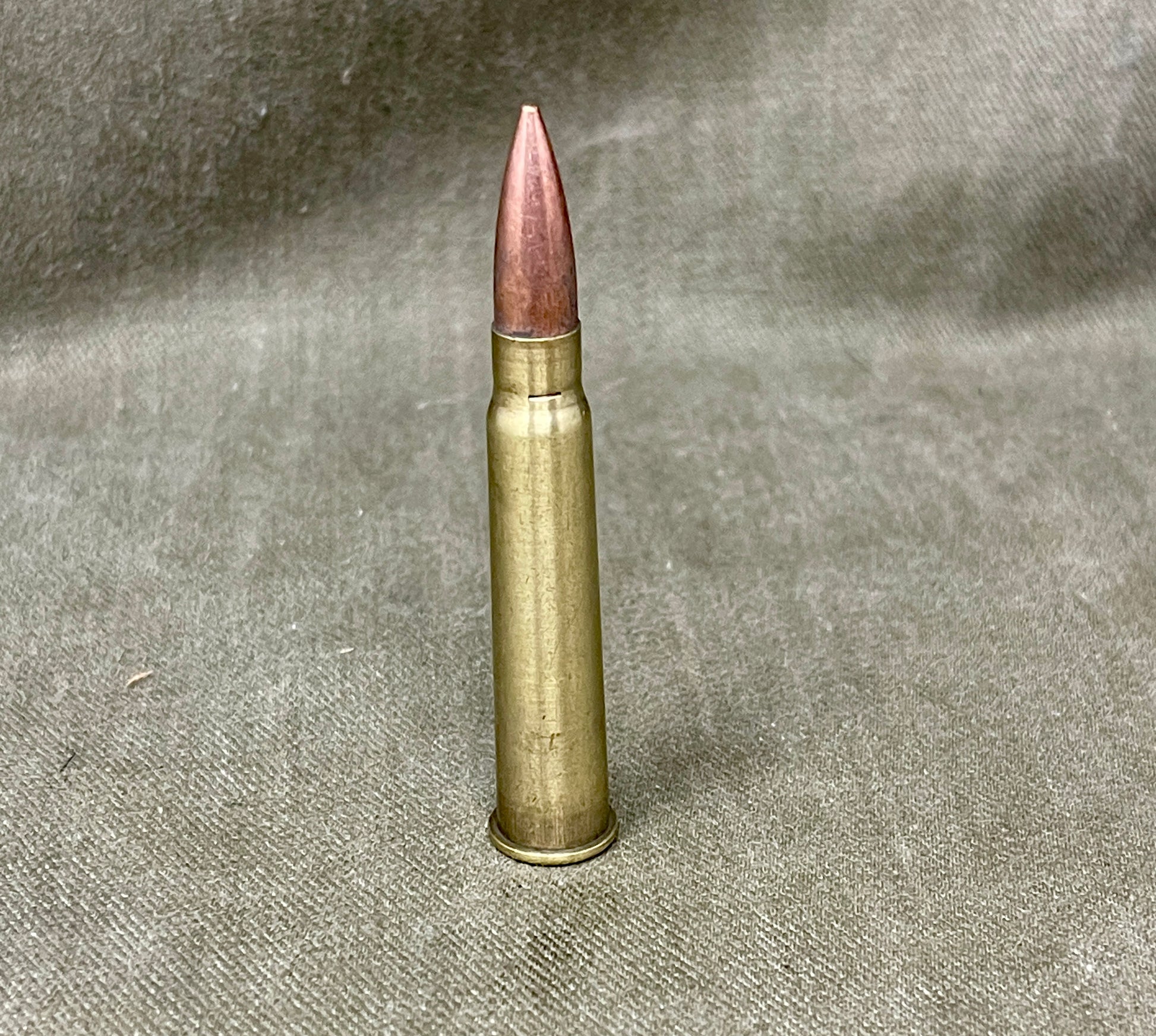 This is an inert British .303 cartridge dated 1940 with the GB headstamp, identifying production by Greenwood & Batley, Leeds, one of Britain’s major ammunition manufacturers. Produced during the post-war period, these rounds were widely issued for training and service use as the .303 remained in active deployment across the Commonwealth. This example retains its original finish and clear markings, making it ideal for collectors of post-war British ammunition. Fully inert and safe for display, it is suitable for headstamp reference collections or general militaria displays.