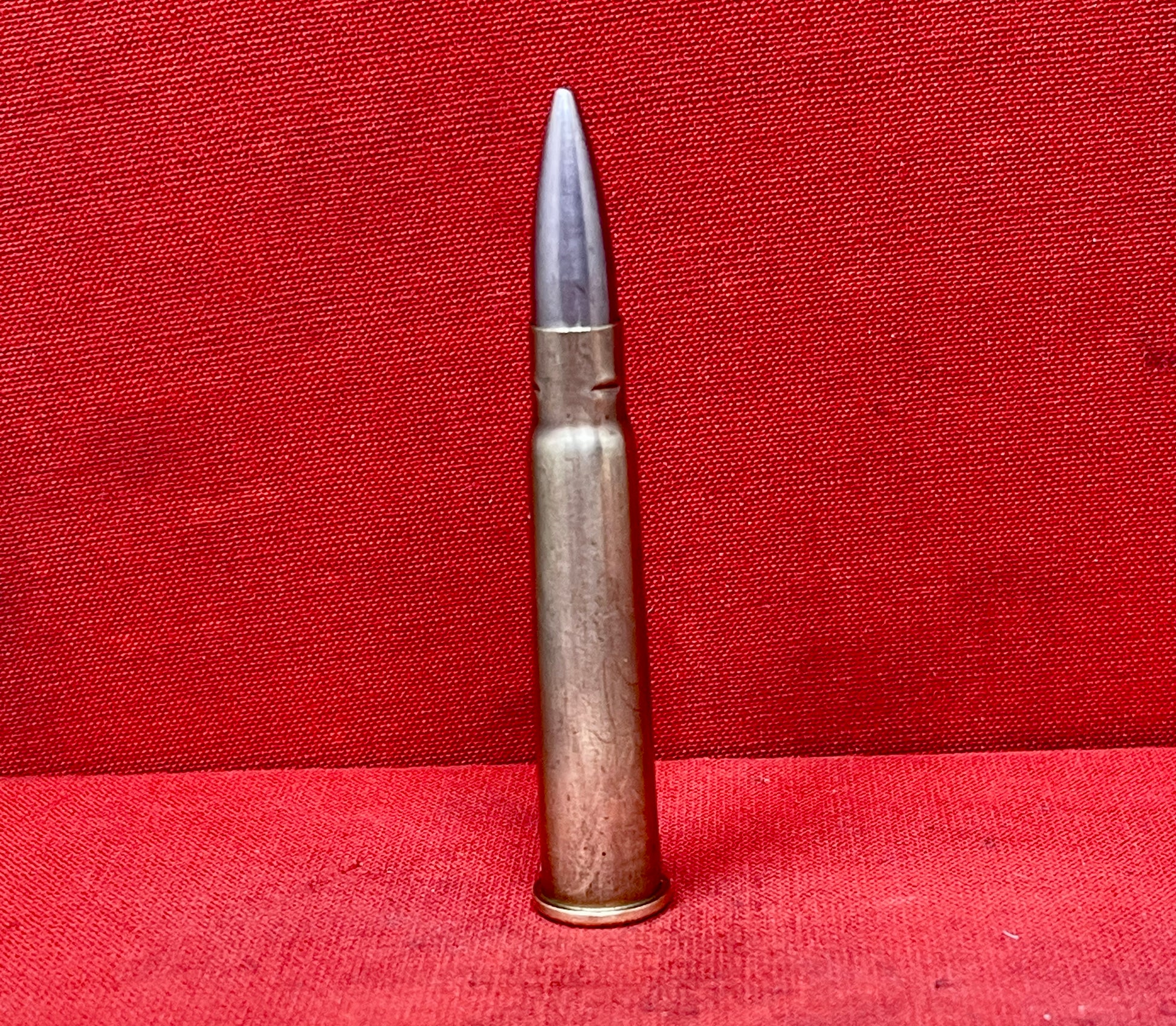This is an inert British .303 cartridge dated 1941 with the GB headstamp, identifying production by Greenwood & Batley, Leeds, one of Britain’s major ammunition manufacturers. Produced during the post-war period, these rounds were widely issued for training and service use as the .303 remained in active deployment across the Commonwealth. This example retains its original finish and clear markings, making it ideal for collectors of post-war British ammunition. Fully inert and safe for display, it is suitable for headstamp reference collections or general militaria displays.