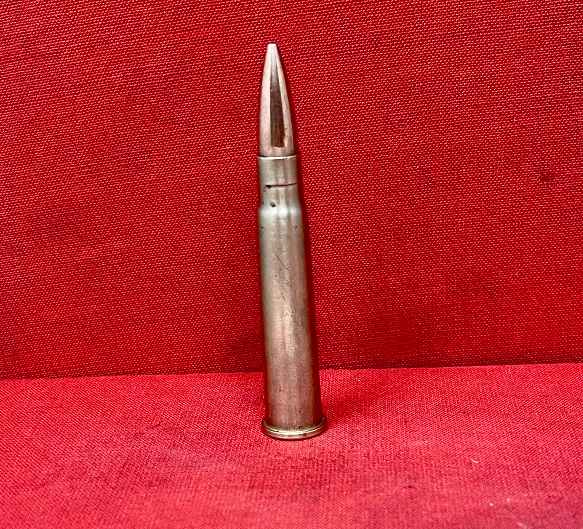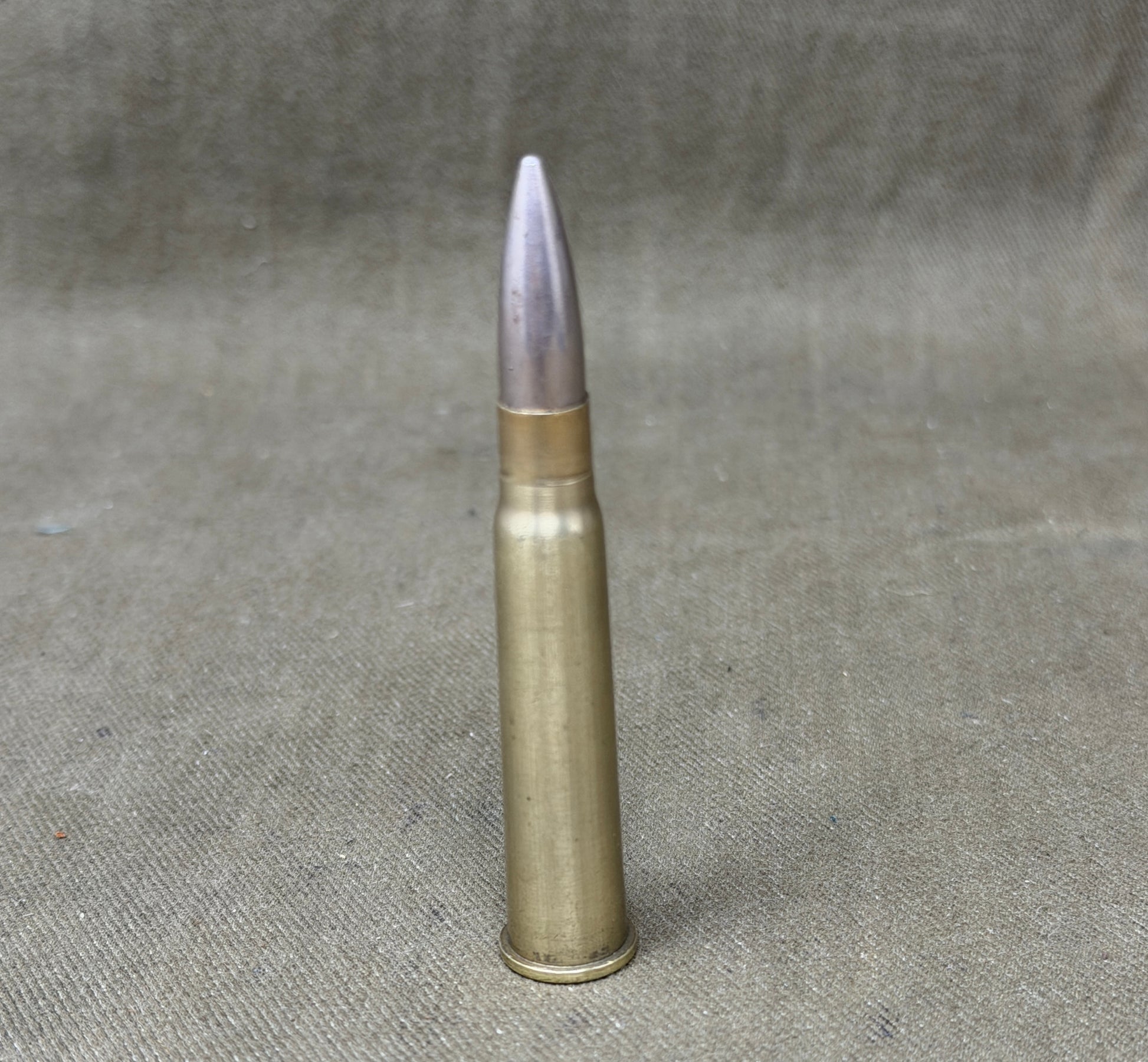 This is an inert British .303 cartridge dated 1942 with the GB headstamp, identifying production by Greenwood & Batley, Leeds, one of Britain’s major ammunition manufacturers. Produced during the post-war period, these rounds were widely issued for training and service use as the .303 remained in active deployment across the Commonwealth. This example retains its original finish and clear markings, making it ideal for collectors of post-war British ammunition. Fully inert and safe for display, it is suitable for headstamp reference collections or general militaria displays.