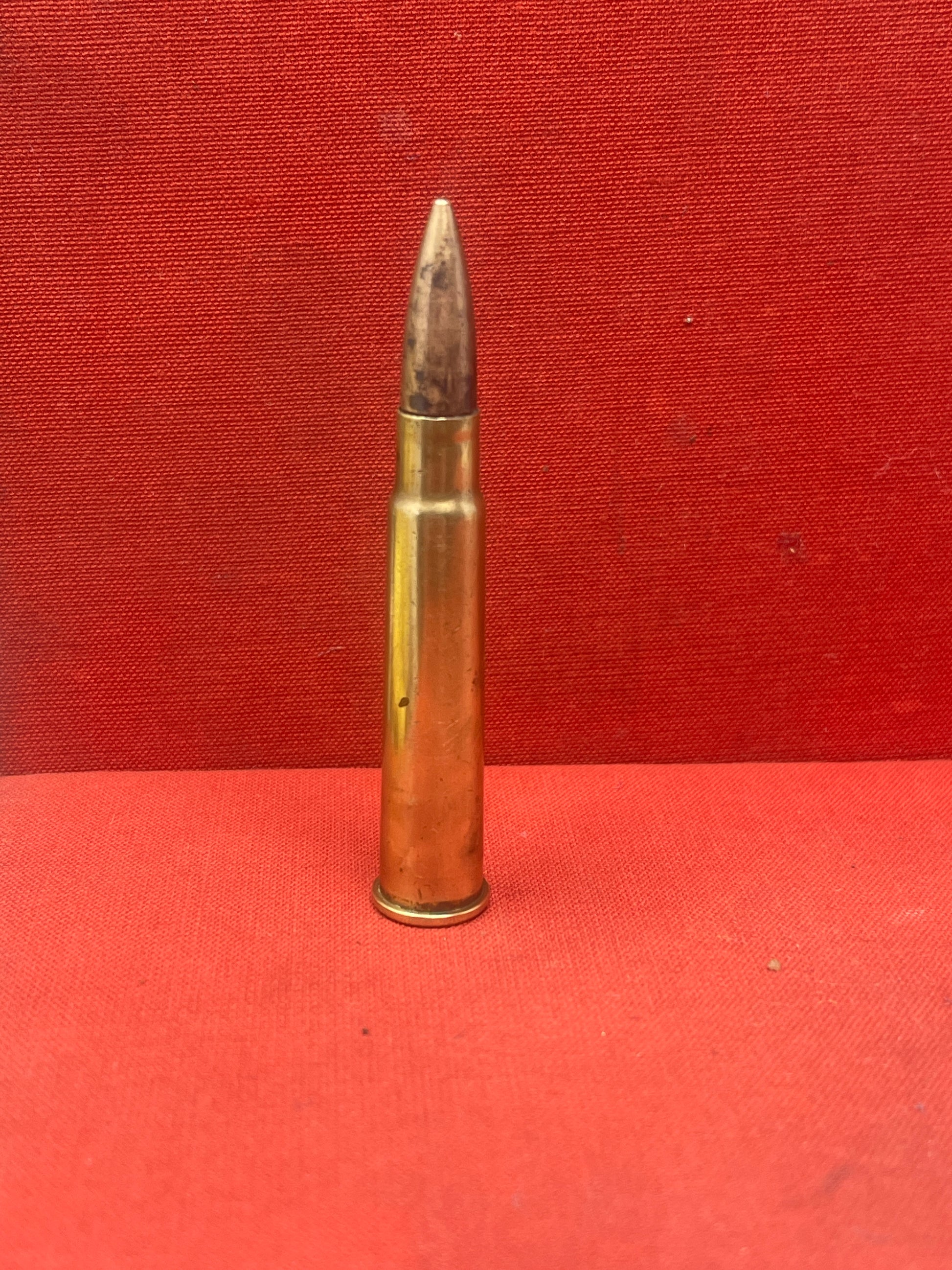 This is an inert British .303 cartridge dated 1956 with the GB headstamp, identifying production by Greenwood & Batley, Leeds, one of Britain’s major ammunition manufacturers. Produced during the post-war period, these rounds were widely issued for training and service use as the .303 remained in active deployment across the Commonwealth. This example retains its original finish and clear markings, making it ideal for collectors of post-war British ammunition. Fully inert and safe for display, it is suitable for headstamp reference collections or general militaria displays.
