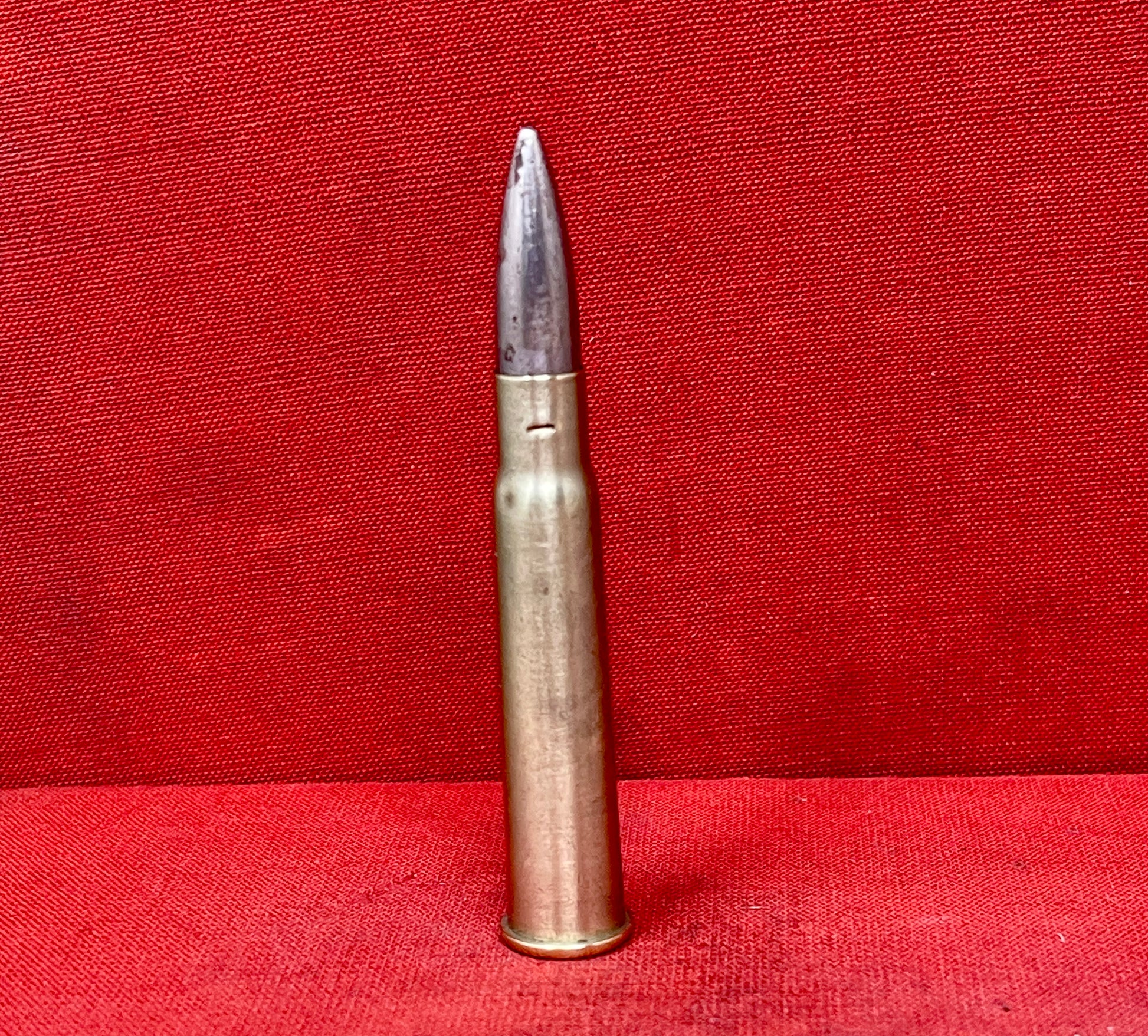 This is an inert British .303 rifle cartridge, manufactured in 1912 by the Kings Norton Metal Co., Birmingham, and marked with the KN headstamp. Early-production KN rounds are highly sought after for their pre–First World War manufacture and distinctive case markings. This 1912 example offers excellent historical value, representing ammunition used during the development years of the SMLE (Short Magazine Lee–Enfield) rifle. Fully inert and safe for display, it is a desirable addition for collectors of early .303 ammunition, British ordnance historians, or those building a comprehensive headstamp reference collection.