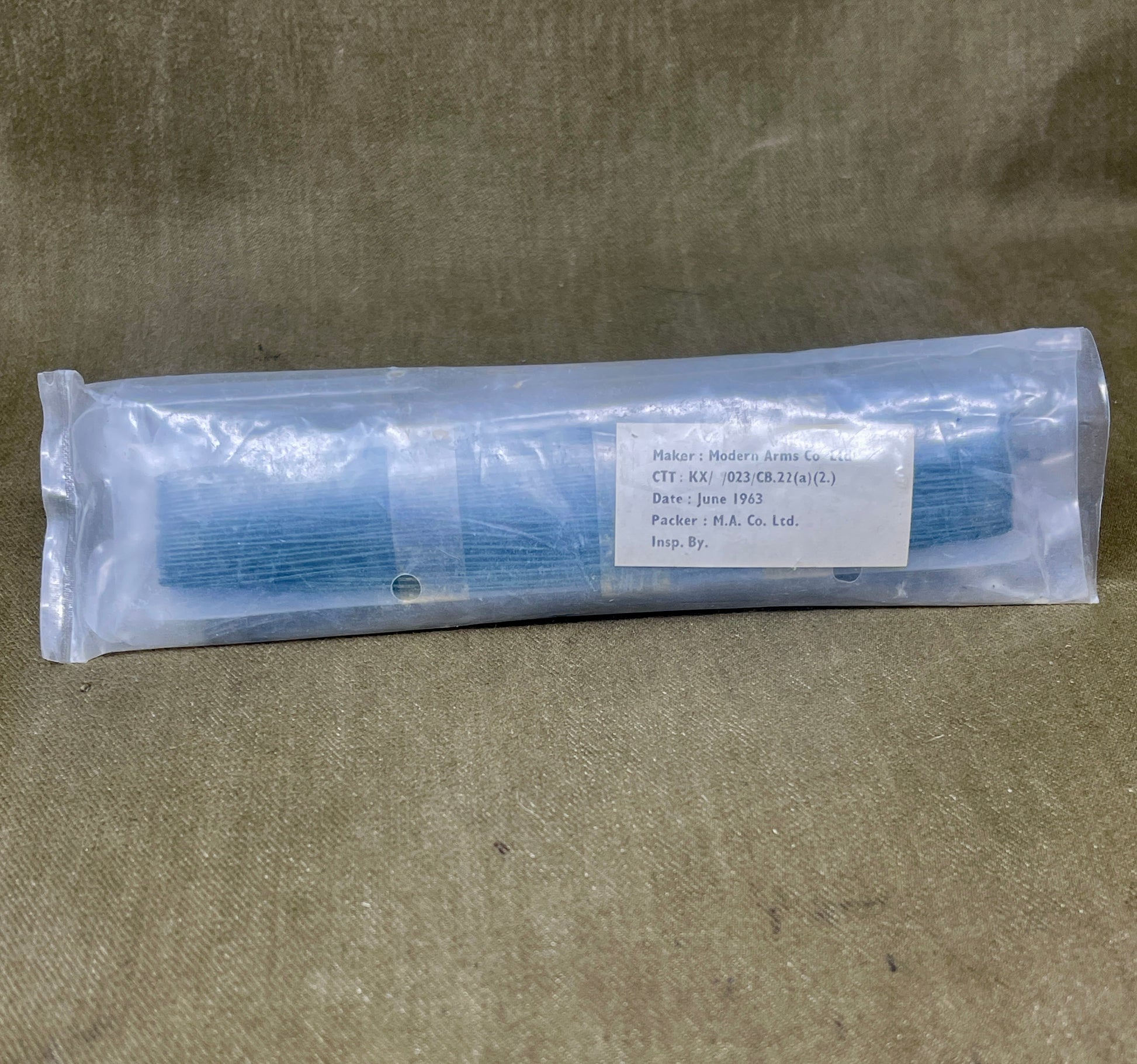 A complete British Army Tropical Fishing Tackle set, dated June 1963 and marked 22P/8, manufactured by Modern Arms Co Ltd. Issued for use in tropical and jungle survival kits, this compact set was designed to provide emergency food procurement for service personnel operating in remote environments. This example is in excellent condition, with all original components present and showing minimal signs of age or use. A scarce post-war survival accessory, ideal for collectors of British military survival equipment, Cold War-era kit, or jungle warfare memorabilia.
