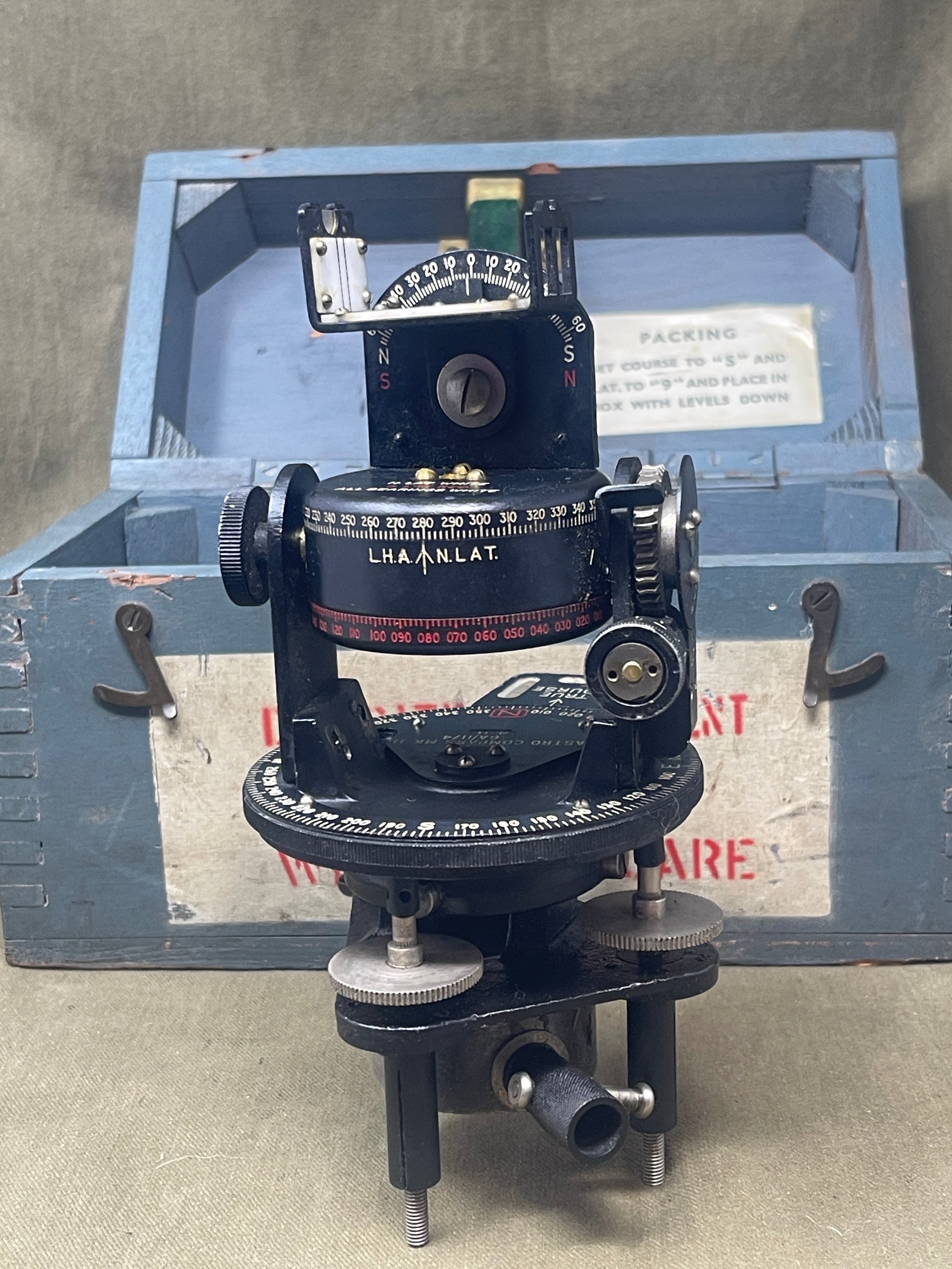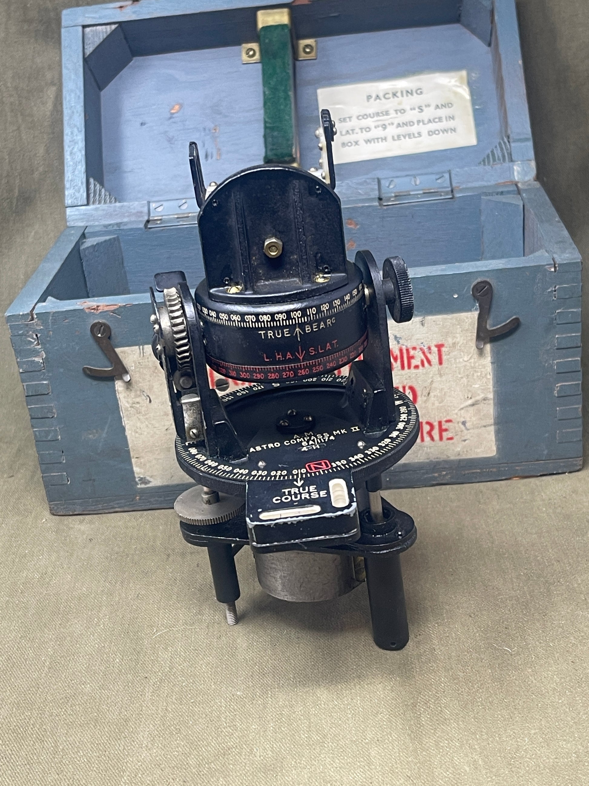 MK II Compass, presented in its original box and in excellent condition. A remarkable piece of aviation history, this precision instrument was an essential navigational tool used by Allied bomber crews during World War II. Manufactured in Canada, the ASTRO MK II compass played a critical role in aerial navigation, allowing pilots and navigators to determine their heading and position, even in challenging conditions.