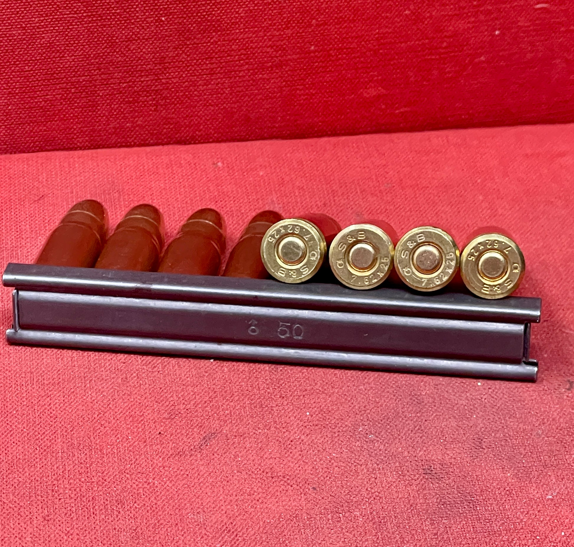Stripper Clip with 8 × INERT 7.62×25 Tokarev Rounds — Deactivated Training Set