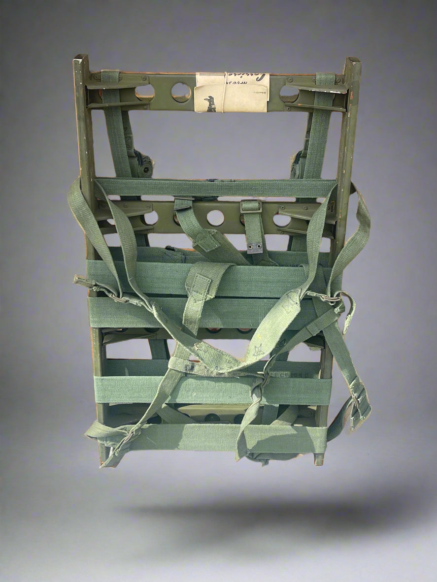 A fantastic example of the 1944 Pattern Man-Pack Carrier. All parts are present and marked and dated accordingly. Original "How to use instruction booklet " Attached.