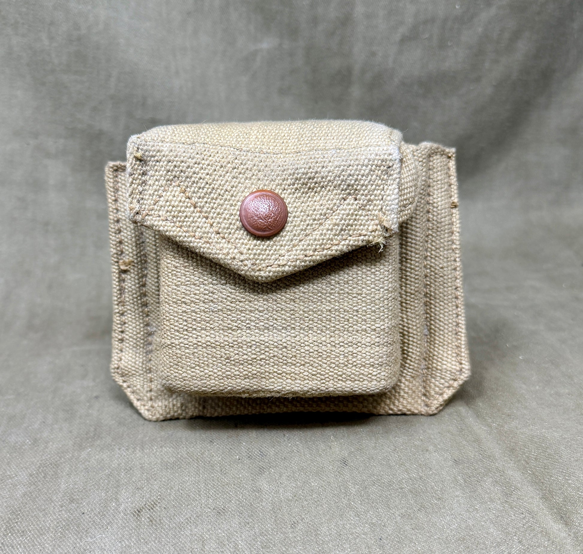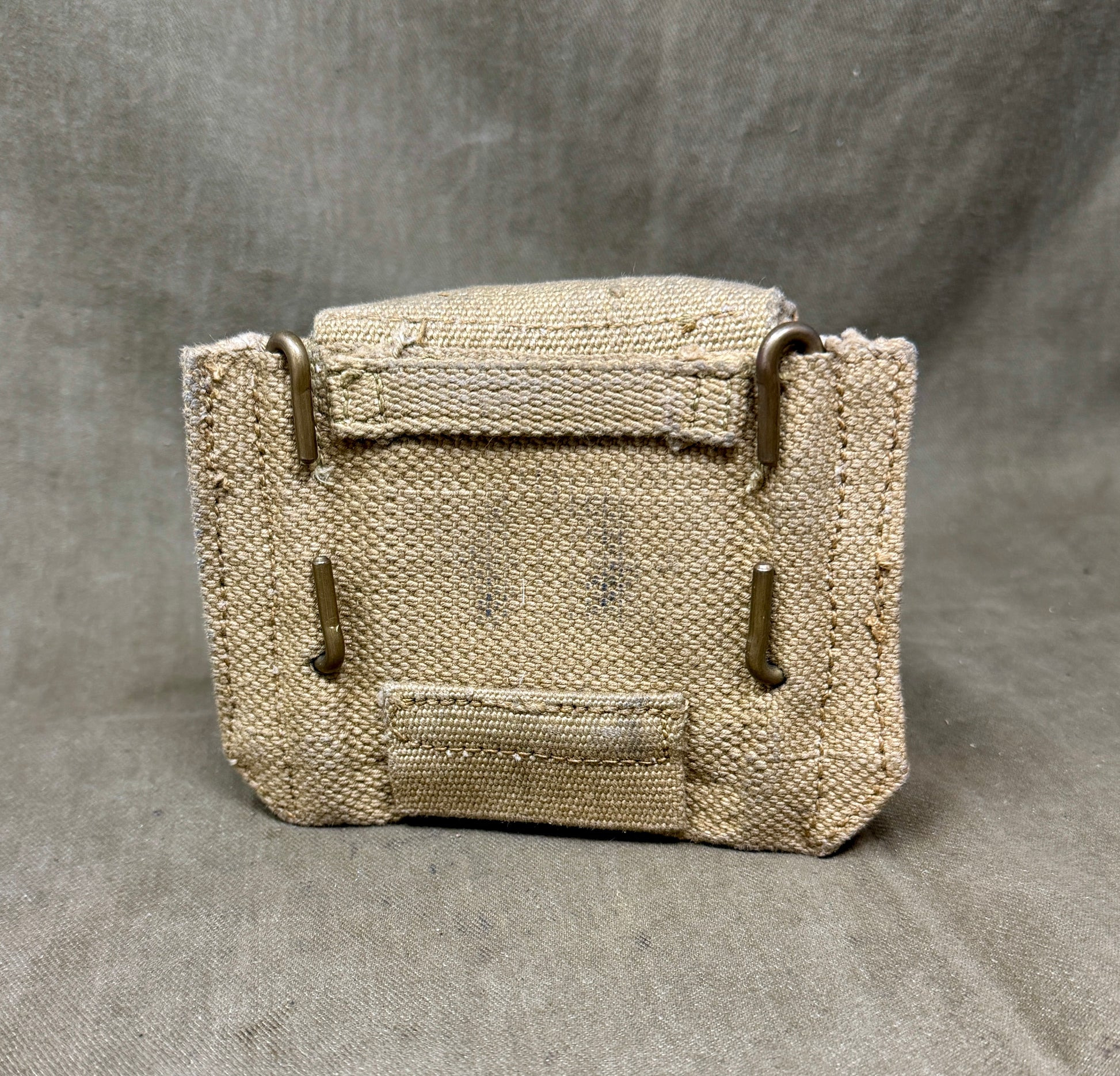 Accompanying the compass is its correct 1937 Pattern webbing officer’s compass case, marked MECo 1940 (Mills Equipment Company). The case is constructed from heavy-duty webbing and designed to protect the compass while allowing easy access during operations. Its presence greatly enhances the display and collector value of the set.