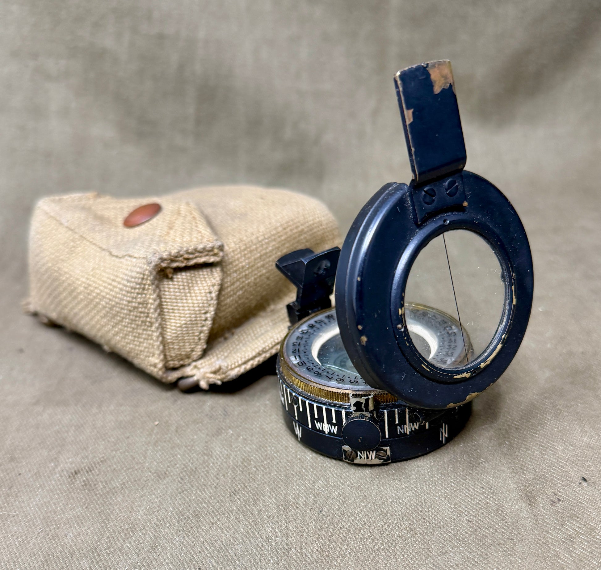 Together, the compass and case form a complete and highly desirable ensemble, ideal for collectors of British WW2 equipment, navigational instruments, or officer-issued field gear. An outstanding original piece suitable for display, collection, or historical reference.
