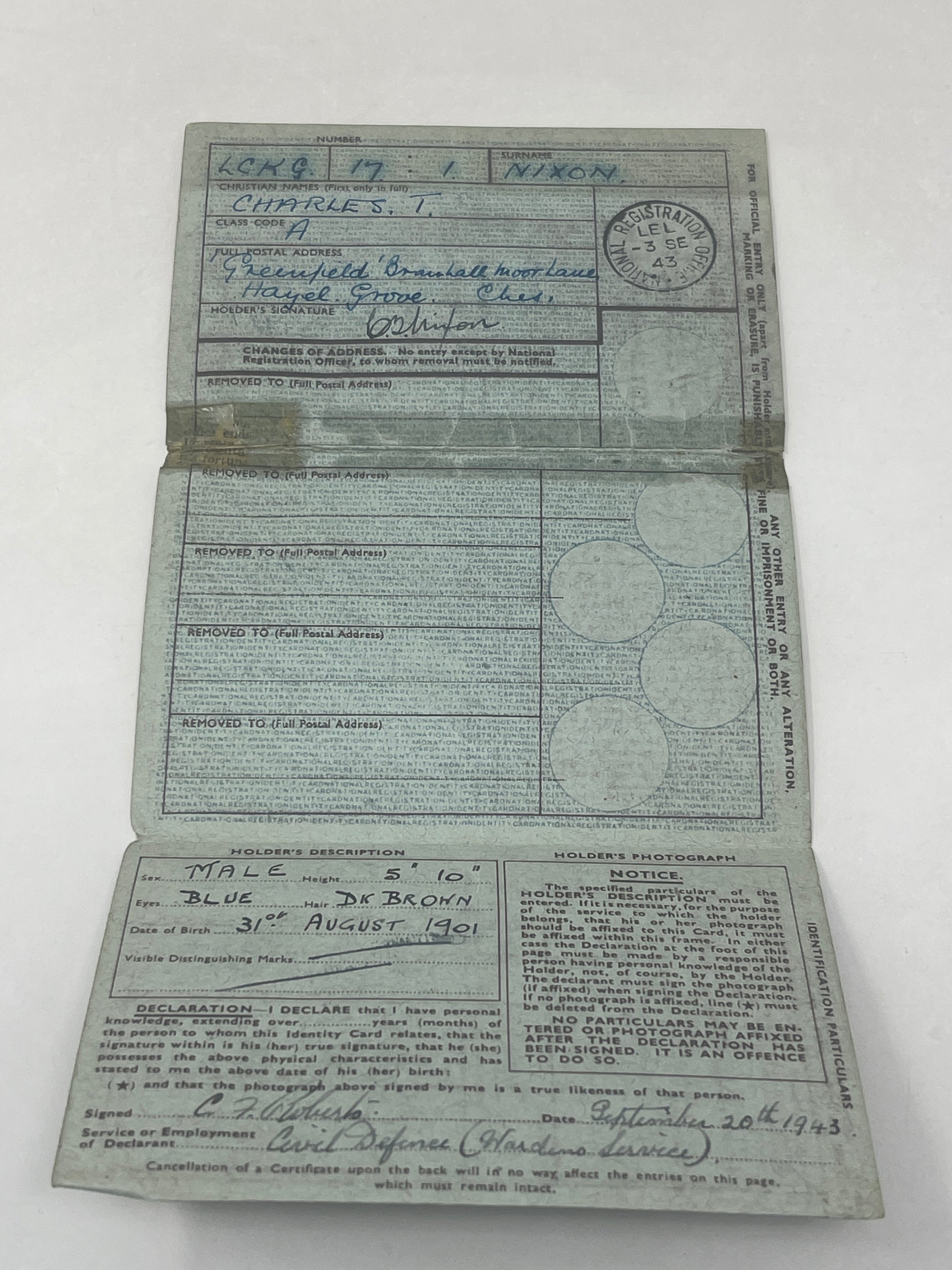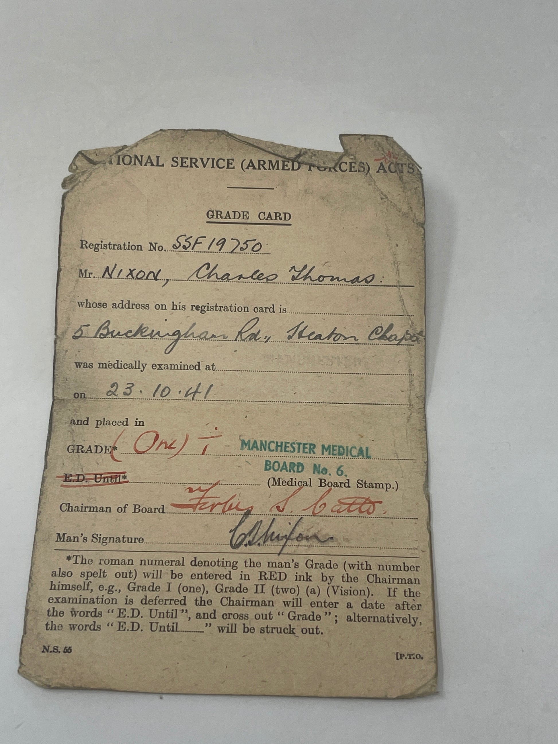 WW2 National Service Grade Card & Misc Paperwork